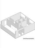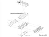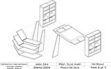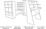 The north-facing object is simply a bed supported by bookselves on both ends made simply of 3 vertical elements and several horizontal slabs in which books are to be placed. At the bottom of the bookshelves, is an easily accesible storage space. The bed and bookshelves are oriented so as to prevent light from the north from being obstructed.