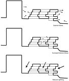 I first started off my design with the general form of most boats in mind and the reason as to why they are shaped like elongated pointed ovals. the design of a boat allows it to move well through water mainly in a forward direction with the help of wind going in the same general direction. In designing for my object-furniture, I created two seperate multi-functional objects. The south-facing object is made of 3 vertical elements designed to be able to be easily self supporting with just a single horizantal slab to help it. This object has 4 horizontal slabs: a worf surface, a display space, and 2 sun shading devices which help to shade the work space below but give indirect sunlight.
