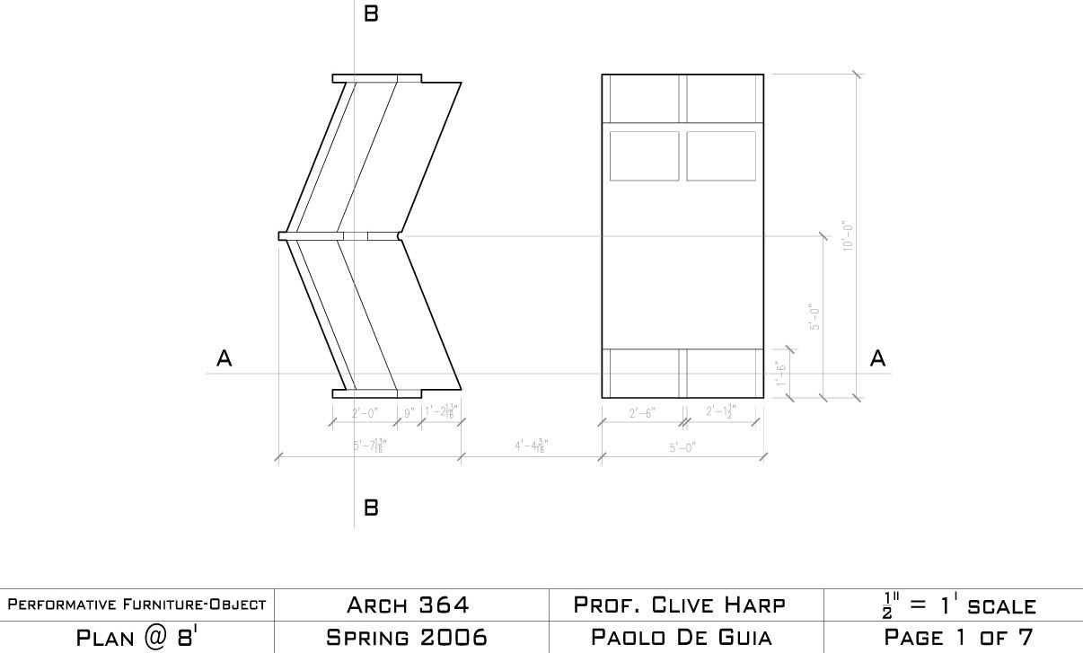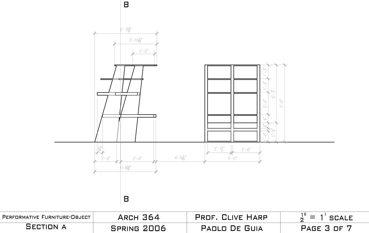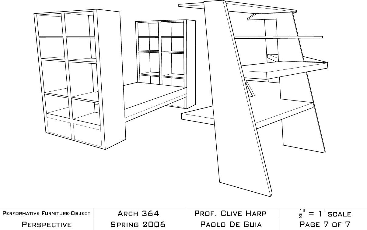 The design for my funiture-object came mainly from the programmatic requirements of the project: sleeping area for two, book stacks for a large collection, storage space, display space, work surface, sun shading device to the south-facing end, and solar collection device for the north-facing end; as well as designing a perfomatively functional object that would convey the client's interest in maritime-craft design and fabrication, which I attempted to adress.